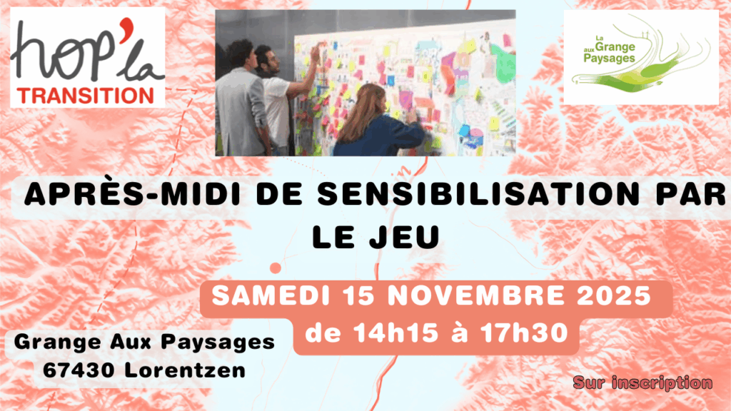 Avec ses soirées à thèmes, ses conférences, sa présence sur des évènements ponctuels à coté d’autres associations ou de collectivités, ou bien avec ses grandes soirées “On y est Fresque”, Hop La Transition rythme le calendrier alsacien de la transition écologique et sociale. Et toujours dans la bonne humeur 🙂
